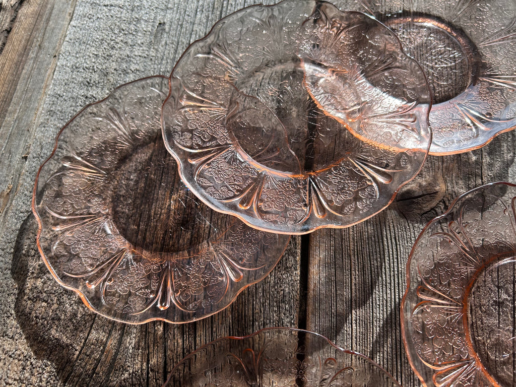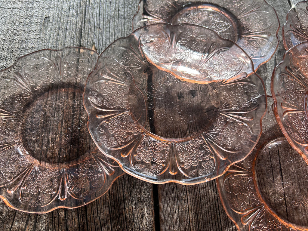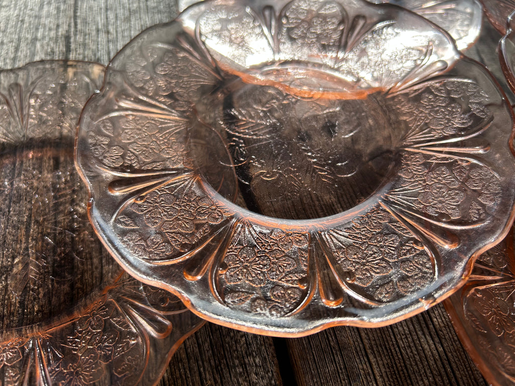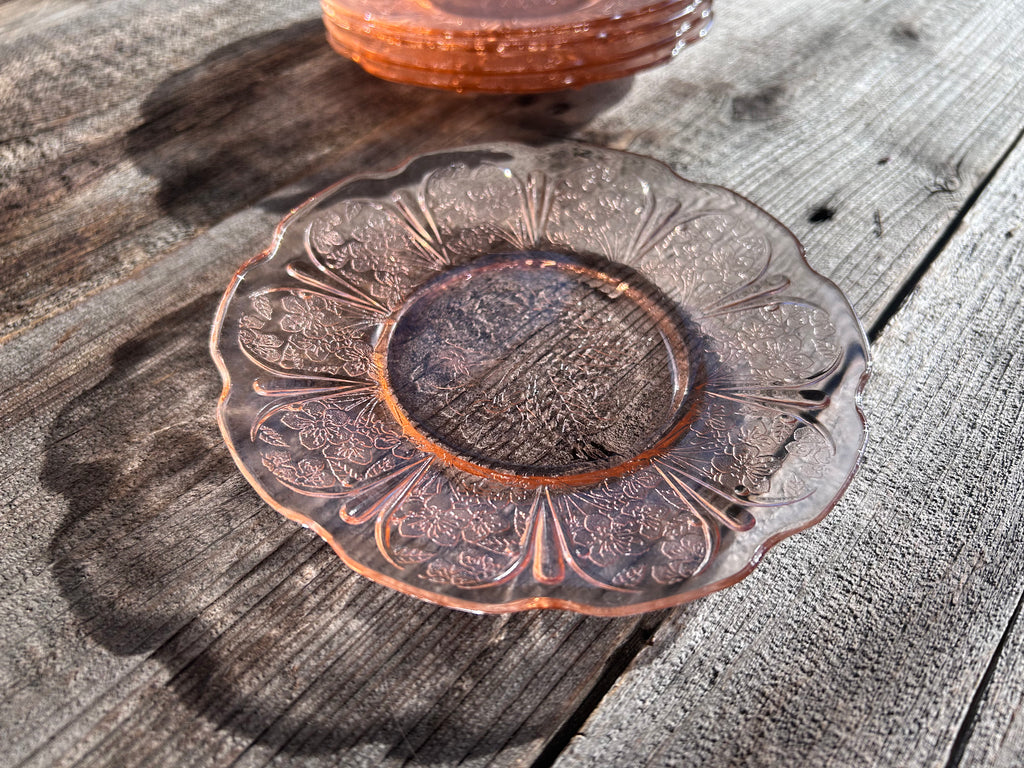 Vintage Individual Jeannette Glass Pink Cherry Blossom Bread and Butter Plate